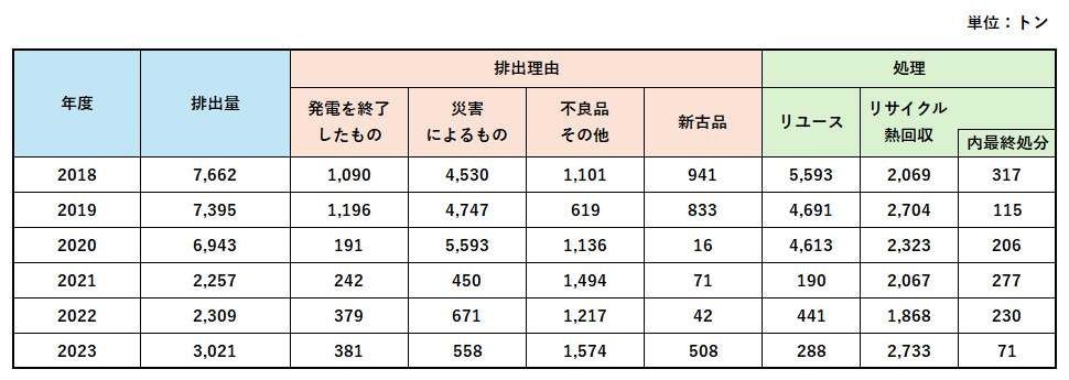 出所:令和6年度使用済再生可能エネルギー発電設備のリサイクル等の推進に係る調査・検討業務など環境省調査から引用